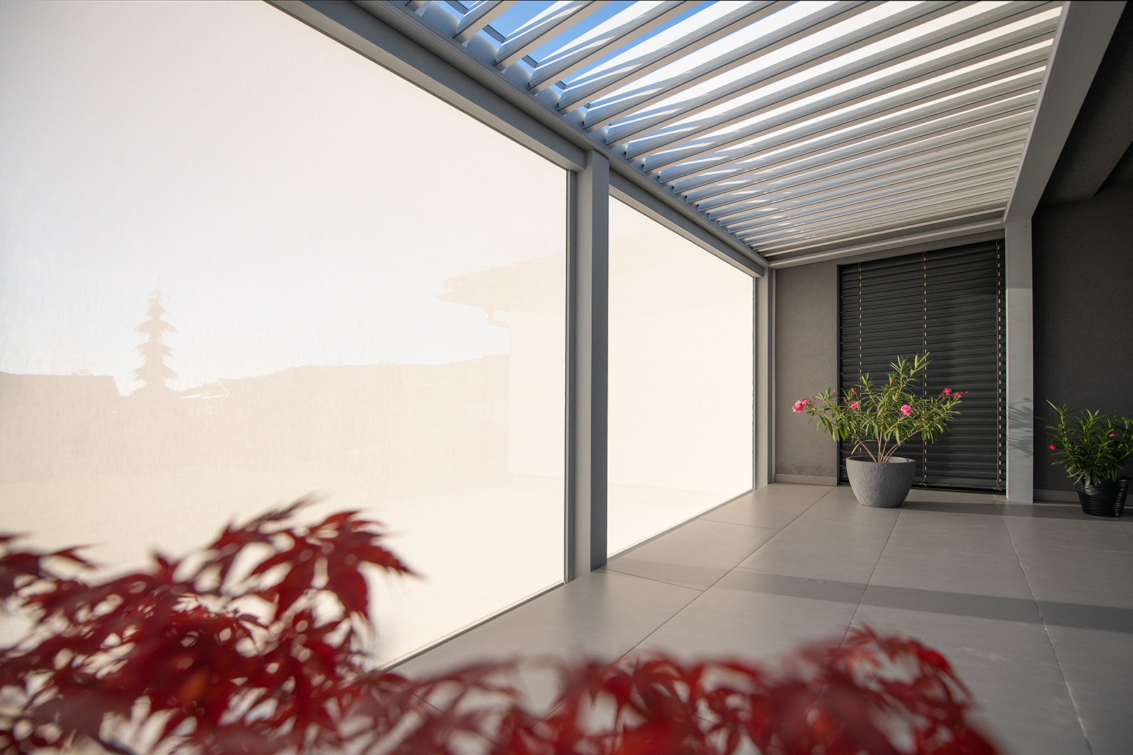 Bočné screenové rolety vás pod pergolou ochránia pred vetrom, zrakmi susedov aj nízkym slnkom. Bočné zatienenie vám umožní využívať pergolu aj v chladnejších mesiacoch.