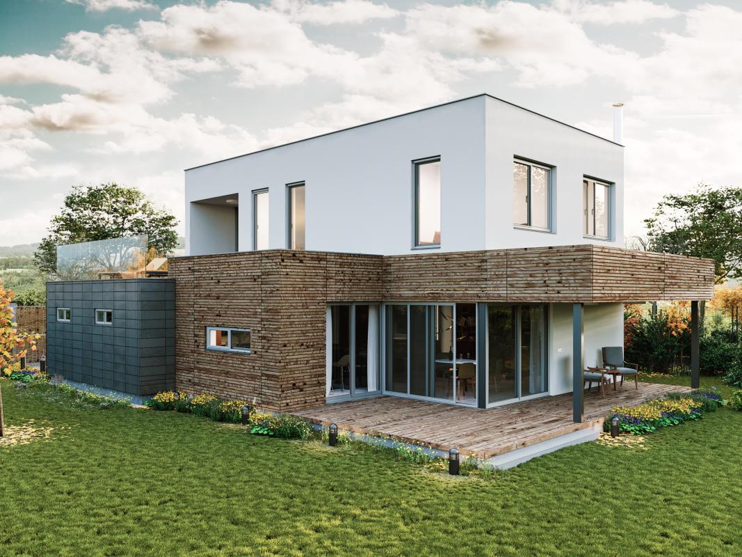 Posuvní síť s venkovními žaluziemi v šedé barvě na terase s dekorem